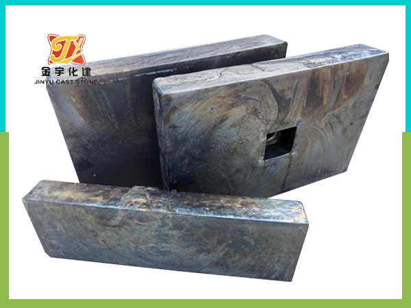 鑄石板材有普形、普異形、特異形三大類。普形板材有矩形板、梯形板、六角形板、扇形板、圓形板等;普異形板有弧形板、溜槽鑲板、灰渣溝直溝鑲板等;特異形板有:雙曲面板、錐面板、篩蓖條鑄石板及灰渣溝彎溝、變徑、匯合口、二岔口、三岔口板等。繁多的設(shè)備襯里鑄石板均包括在上述類別的制品在內(nèi)。